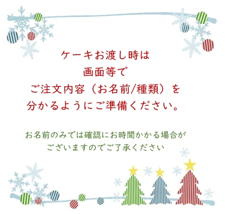 クリスマスケーキ(ご予約のみ)は、ご希望のお客様には手提げ袋お付けします。(お渡しの際に確認させていただきます)